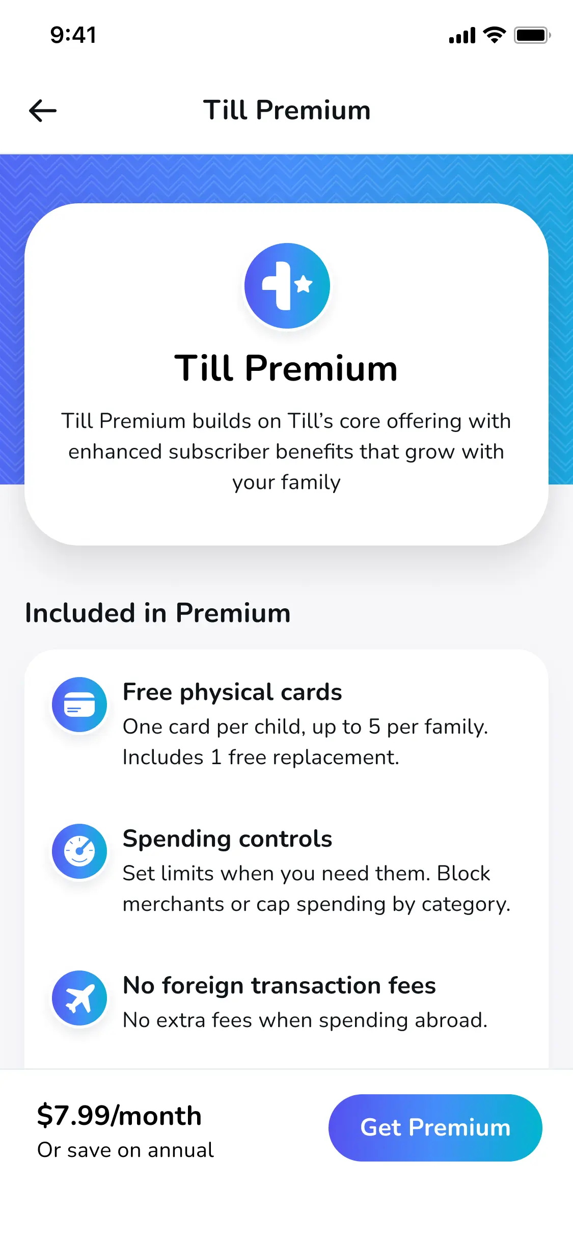 Till Premium builds on Till’s core offering with enhanced benefits that grow with your family.